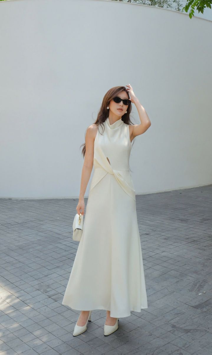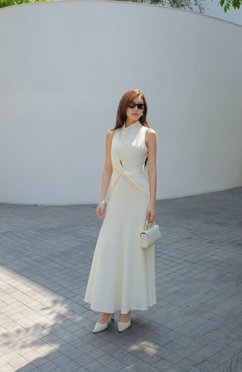 - COCO HIGH NECK CREAM DRESS
